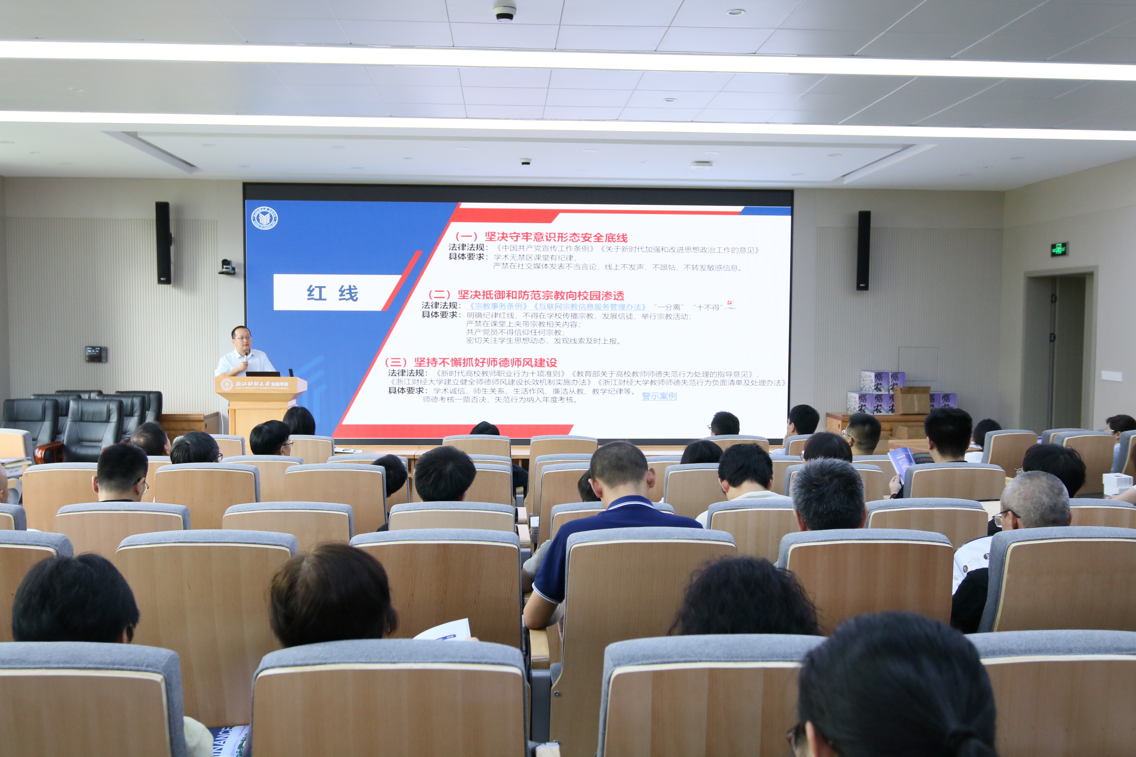 会上,公司党委书记朱旭明领学《新时代高校教师职业行为十项准则》《高校教师师德失范行为处理的指导意见》《宗教事务条例》等文件规定精神,分析了意识形态、宗教渗透、师德师风等工作中可能存在的风险点,并结合近期高校领域出现的教师违反师德师风和意识形态要求的典型案例,对全体教职工进行了深入剖析和警示教育。