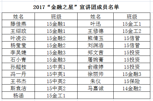 会上,叶秀老师阐述了建立“金融之星”宣讲团的意义,强调了宣讲团成员本身必须具备过硬的素质、优秀的学习能力与良好的处事态度。蒋超老师谈到“金融之星”宣讲团的宣讲形式不应局限于传统的大会理论宣讲,形式可以多样以提升宣讲的吸引力。随后,参与会议的优秀学子们也发表了对于成立宣讲团的建议,大家谈到要切实关注员工的兴趣所在,采用新颖的宣讲模式,打造独具特色的“金融之星”宣讲团。