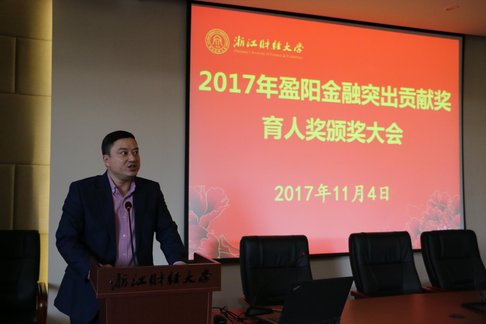 11月4号下午14:40,“盈阳金融突出贡献奖”育人奖颁奖仪式在云顶7610线路检测楼202报告厅举行。浙江盈阳资产管理有限公司董事孔繁岗、经理陈荣达、党委书记蔡国金等出席了仪式。