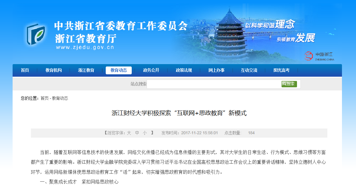 近日,浙江省教育厅以《云顶7610线路检测积极探索“互联网+思政教育”新模式》为题,详细报道了公司互联网思政工作。