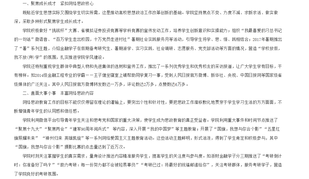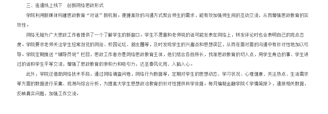 当前,随着互联网等信息技术的快速发展,网络文化传播已经成为信息传播的主要形式。公司党委深入学习贯彻习近平总书记在全国高校思想政治工作会议上的重要讲话精神,坚持立德树人中心环节,运用网络新媒体使思想政治教育工作“活”起来,切实增强思政教育的时代感和吸引力,受到师生的一致好评。
