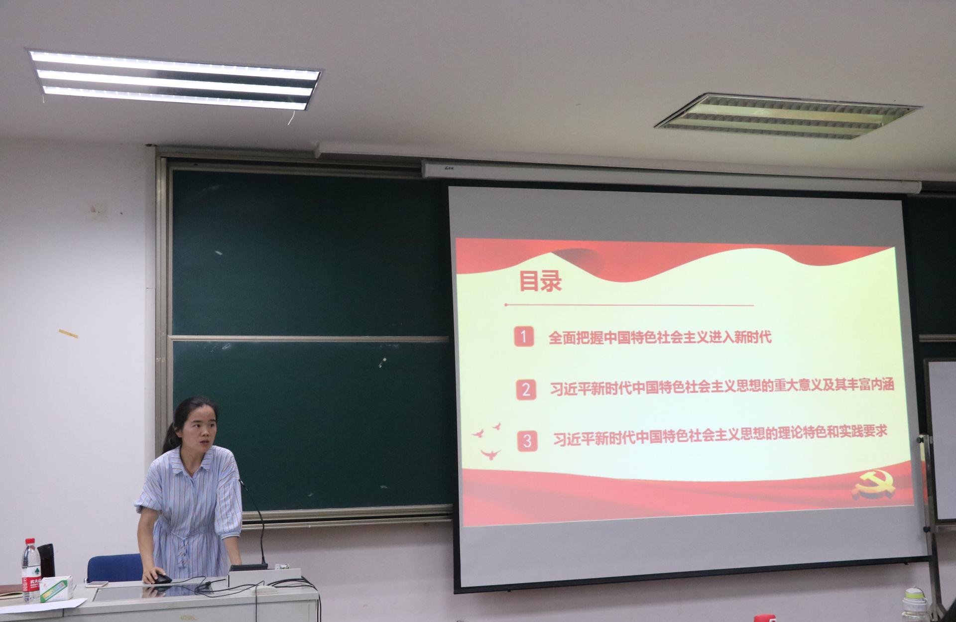 翟丽媛老师为大家讲述了中国特色社会主义新时代的新特征、新气象,阐述了习近平新时代中国特色社会主义思想的重大意义及丰富内涵。以此勉励同学们把握时代新变化,争做与时俱进的优秀青年。