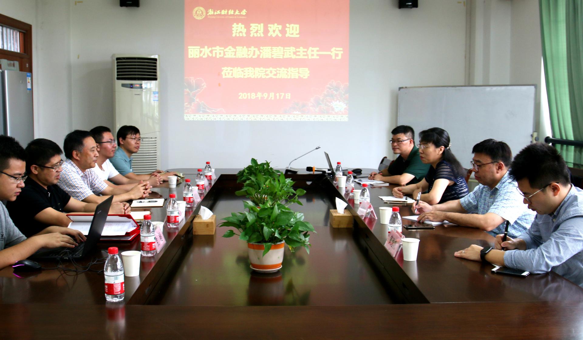 近日,丽水市金融办主任潘碧武一行四人来公司调研校地合作事宜。期间,潘碧武主任一行与公司党委书记蔡国金、经理陈荣达及部分公司教师举行了座谈。