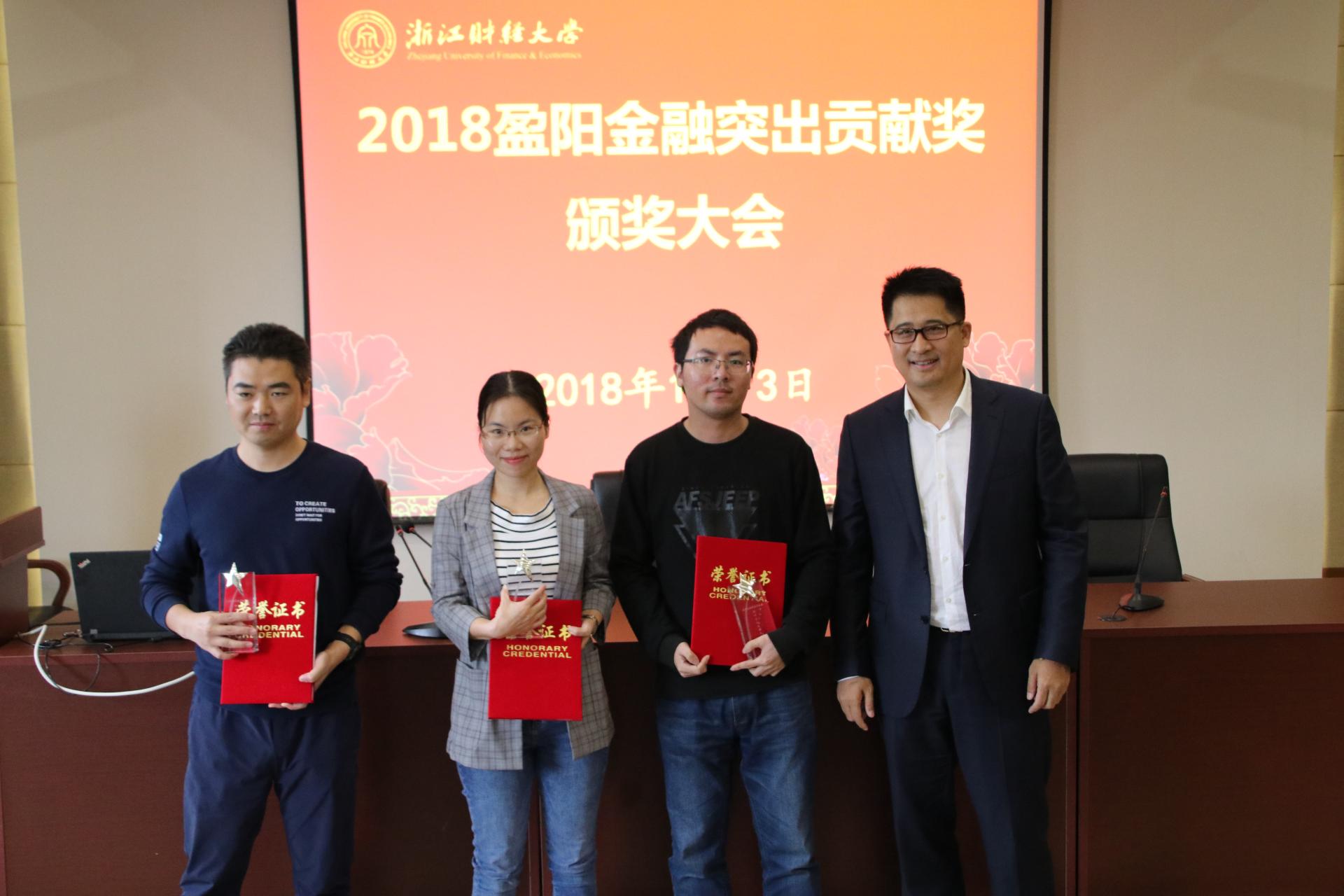 “盈阳金融突出贡献奖”由浙江盈阳资产管理股份有限公司捐资设立,旨在加强云顶7610线路检测团队队伍建设,促进金融学科、专业建设,为社会培养更多的优秀金融人才。经评审,徐敏老师获得2018盈阳金融突出贡献奖教学类银牌,林祺老师、金伟老师、蔡晓慧老师和吕剑老师分别获得科研与社会服务类银奖。