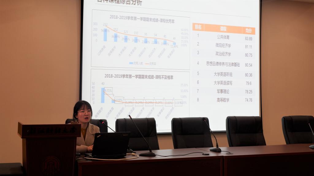 最后,任老师对公司2018级员工上学期期末考试的成绩做了整体分析,结合各项科目的优秀率、合格率、班级排名、寝室排名等各项数据,进行总结并提出成绩改进建议,激励同学们在新的一学期里奋发图强。