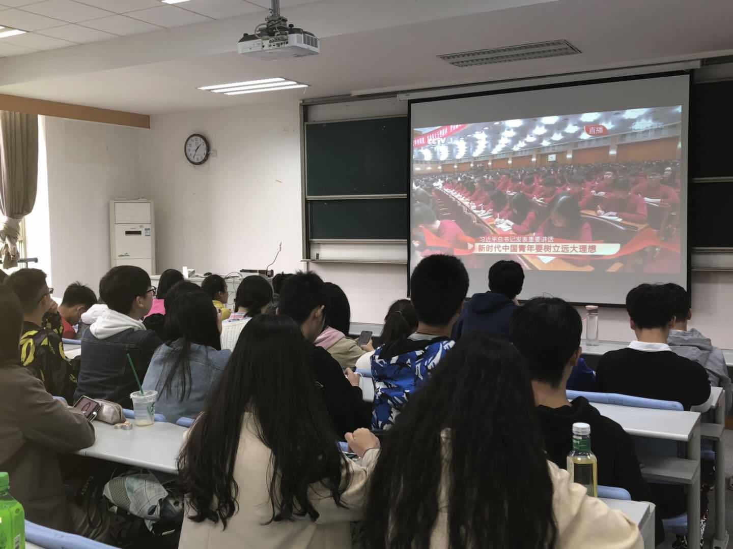 员工各班级在教室组织收看纪念五四运动100周年大会