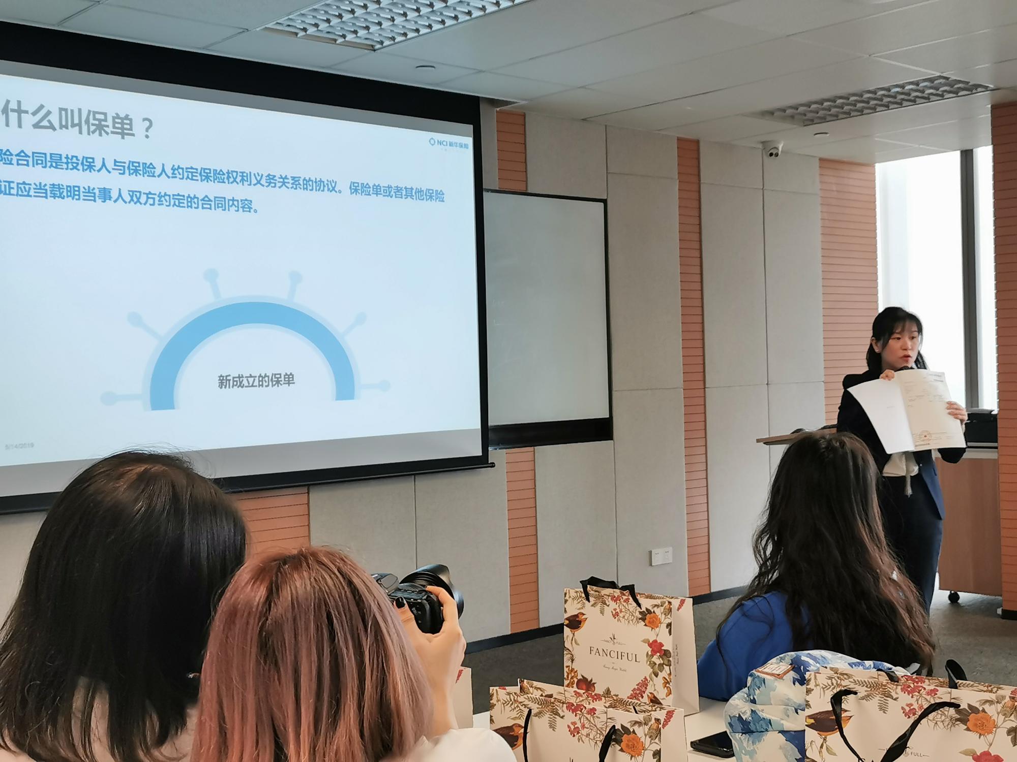 沈经理从一小段视频出发给同学们阐述了寿险的本质,并给大家梳理了一张寿险保单的“生命旅程”,同时结合真实的案例向同学们介绍了保险公司如何在承保和理赔两个环节进行风险管控。在整个授课过程中,还穿插了互动的有奖问答环节,进一步活跃了气氛。在讲座之后,同学们还参观了新华保险省公司的工作场所。