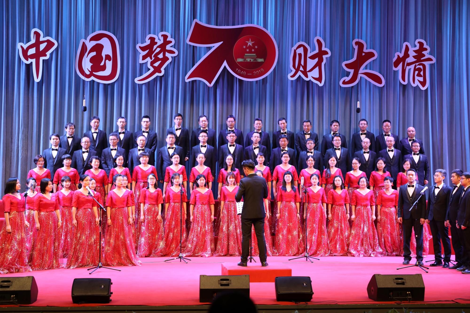 9月26日下午,在中华人民共和国成立70周年、浙财45周年校庆日来临之际,“中国梦·财大情”——庆祝建国70周年、喜迎建校45周年教职工大合唱比赛在文化中心火热开唱。全体校领导和各公司的老师们倾情参与了这场精彩的红色盛典。