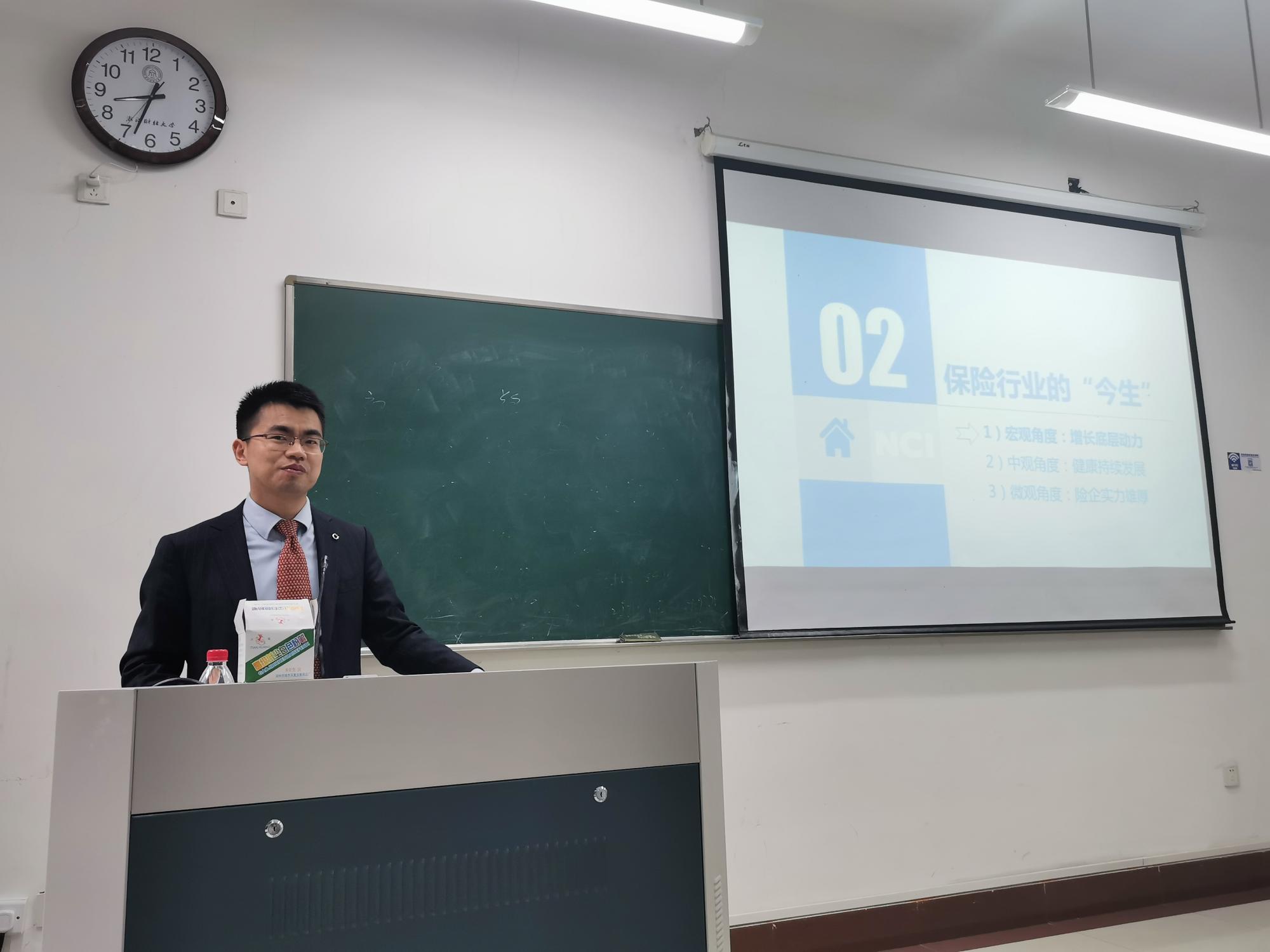 不同于我们从教科书上所学的理论知识,李经理首先和大家一起回顾了保险业的发展历程,在此基础上,从宏观(社会背景以及国家政策)、中观(保险行业的发展潜力)和微观(险企)三个角度,利用大量的数据和事实给同学们介绍了保险行业,特别是寿险业的未来发展潜力,并鼓励同学们在校期间要多多积累知识,不断学习,提升自己的专业技能。