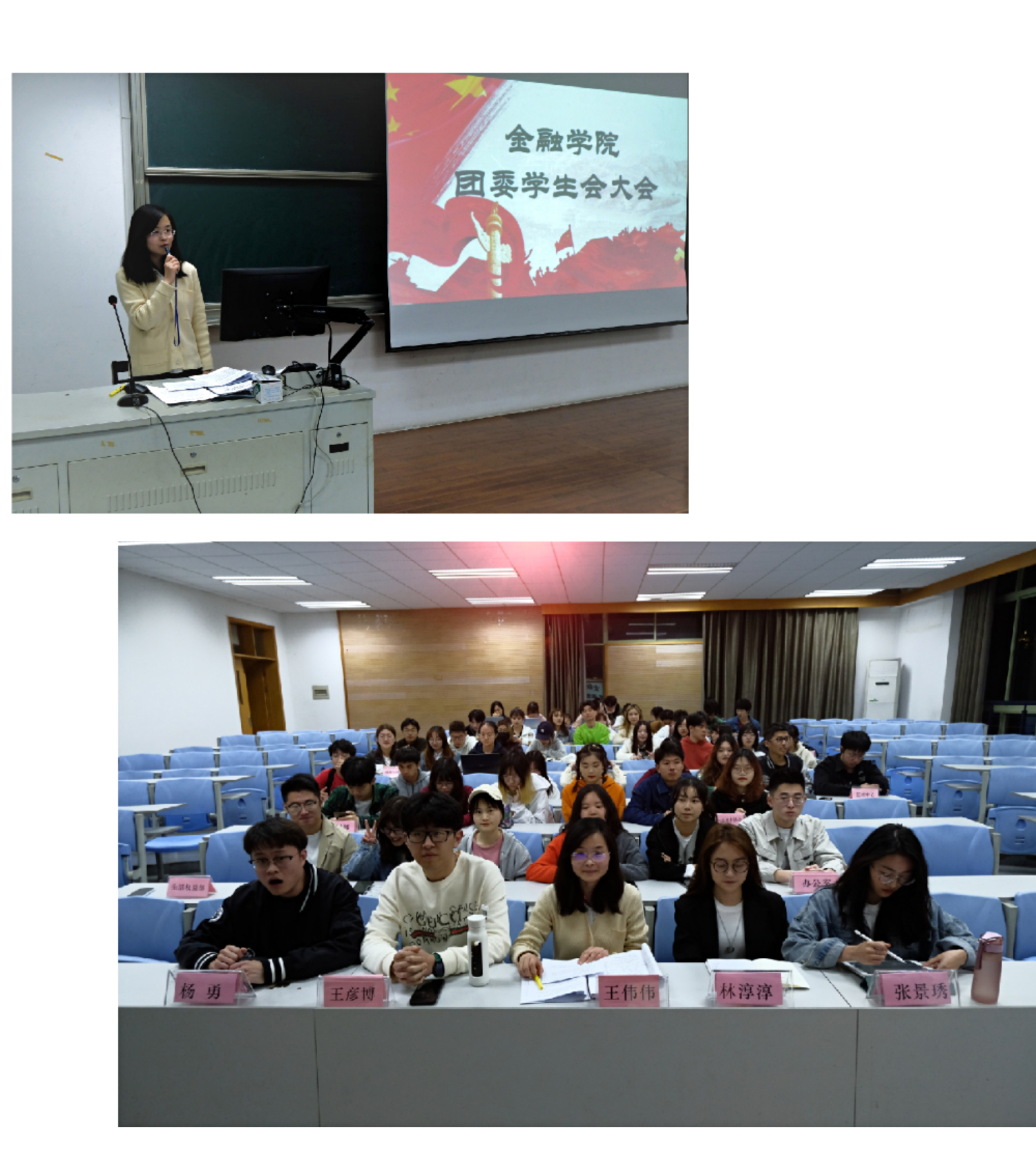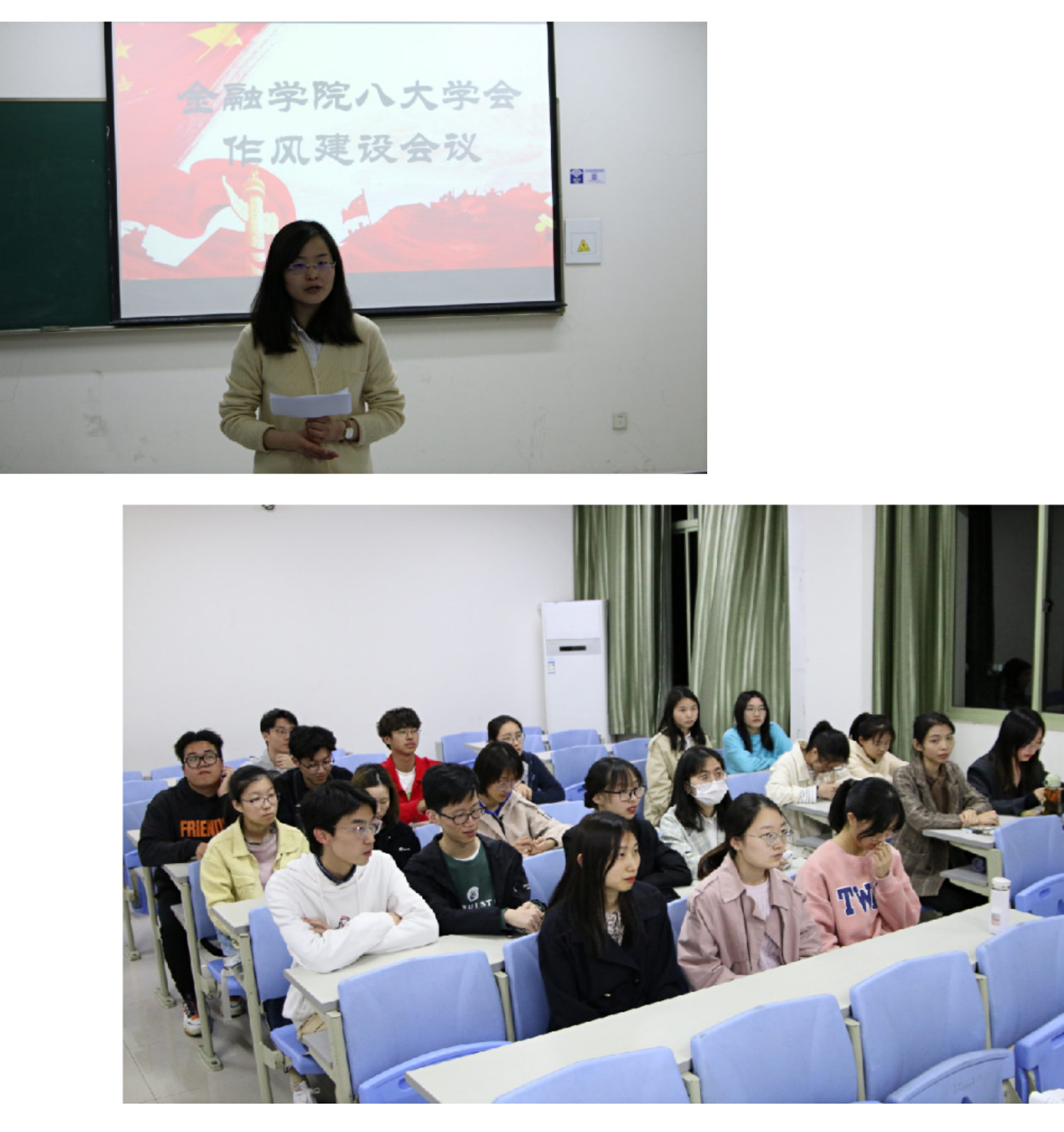 员工会执行主席王彦博宣读《关于进一步加强员工干部队伍作风建设的通知》和全国学联印发《关于学联员工会工作人员改进作风建设服务同学的若干规定》的通知,带领大家逐条领会、重点记忆。