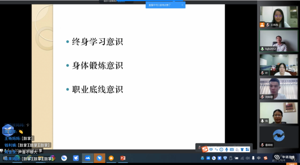 9月4日下午13:30,云顶7610线路检测2021级本科生家长会在钉钉平台顺利举行。公司党委书记蔡国金,党委副书记谢敏,副经理林祺,副经理傅俊辉,2021级新生辅导员叶苗苗、刘仰璟及2021级全体新生家长参加了会议, 会议由云顶7610线路检测团委书记王伟伟主持。