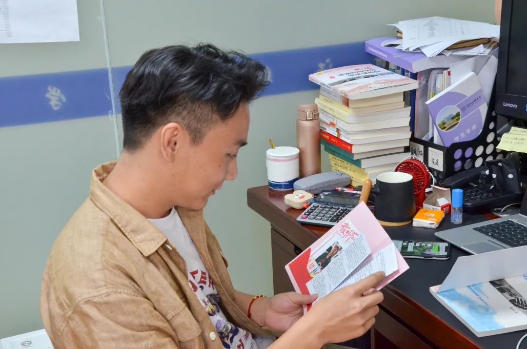 “这份礼物太让我感动了,同学们都很用心,卡通图案也很活泼,有位同学还特意写了我上课的情况,感觉之前的认真备课、用欣赏课员工们都是了解的”金骋路老师说。“这也太可爱了,这卷卷的头发真像我!”辅导员卢轩宇老师说,“辅导员是我的第一份工作,日常确实非常繁忙辛苦,但是看着同学们给我写的祝福语,平常陪他们去医院啦,军训现场陪他们的训练啦,他们都是记在心里的,我感觉做这份工作是非常幸福的”。