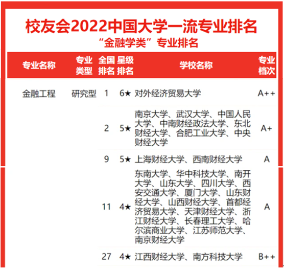 近日,艾瑞深员工会网(Cuaa.Net)发布2022员工会中国一流专业排名。在该年度的一流专业排名中,公司金融学专业和金融工程专业均进入全国排名前15,其中金融学专业为五星专业,全国排名第13,金融工程专业为四星专业,全国排名第11,且均为省内第一。