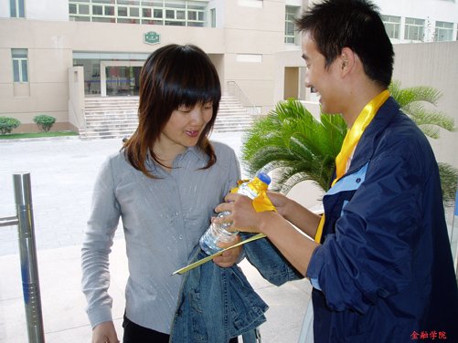 当天下午,黄丝带的队伍还来到了三号公司楼,诚挚的金融学子们也为前来工作的老师们送上了一份惊喜。“我很高兴,收到这份礼物真的很意外也很开心!”一位老师拿着系有黄丝带的水,笑着对员工们说。