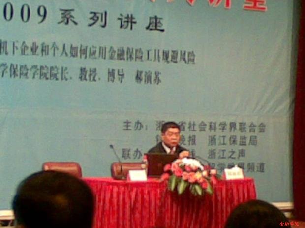 讲座的主题是“当前金融危机下企业和个人如何利用金融保险工具规避风险”,主讲人是国内著名保险专家、中央财经大学保险公司经理郝演苏教授。
