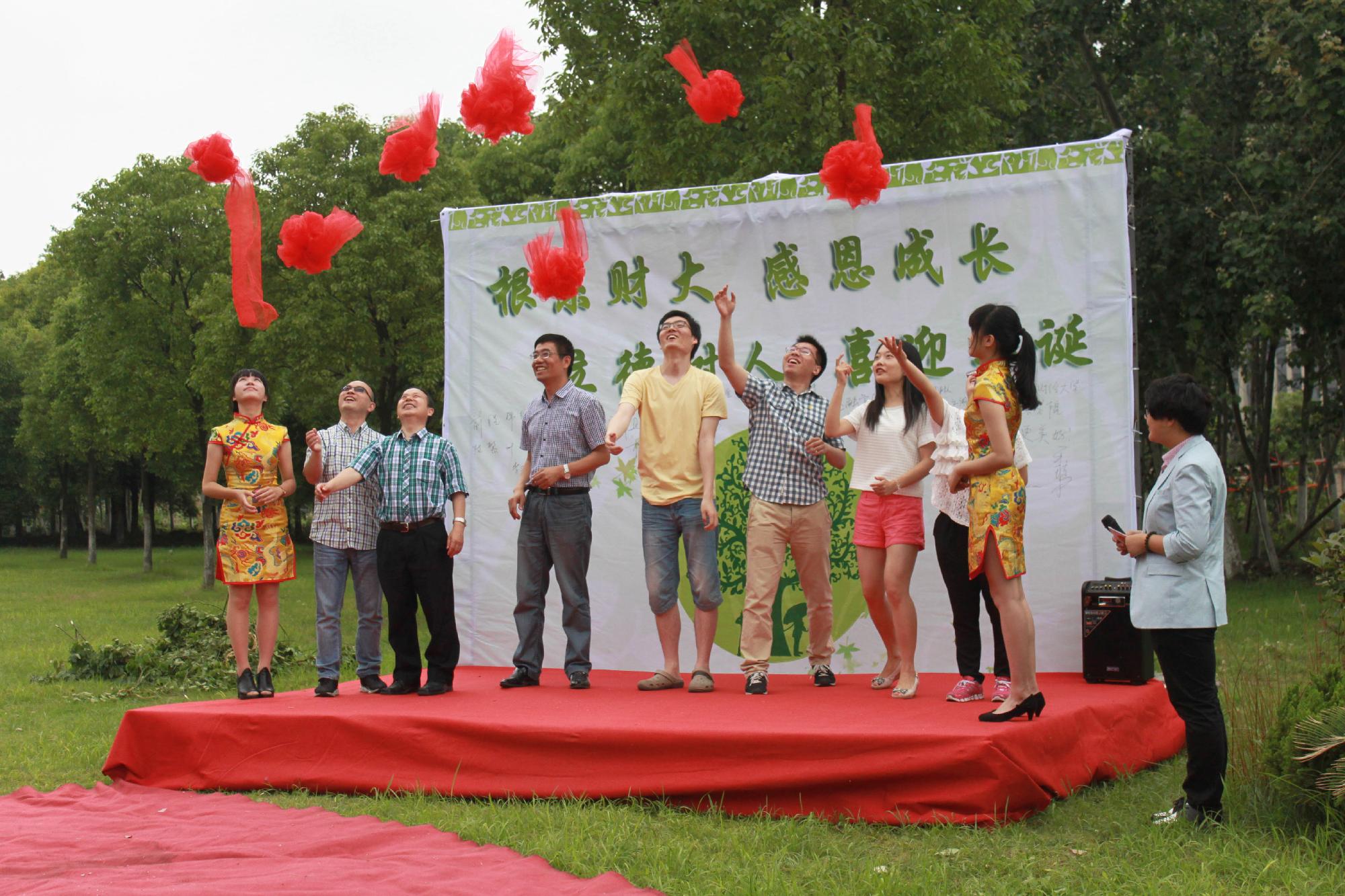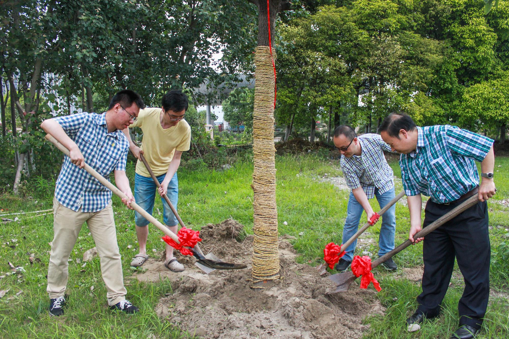 在领导与毕业生代表进行剪彩仪式之后,他们共同完成了最后的植树填土活动,毕业生们也争相上前帮助他们。植树完毕,领导与大四员工代表一同将标注有活动特征的木牌悬挂至所植树苗,象征着他们的心愿将随着树苗一起成长,伴随母校一起走过风雨历程。
