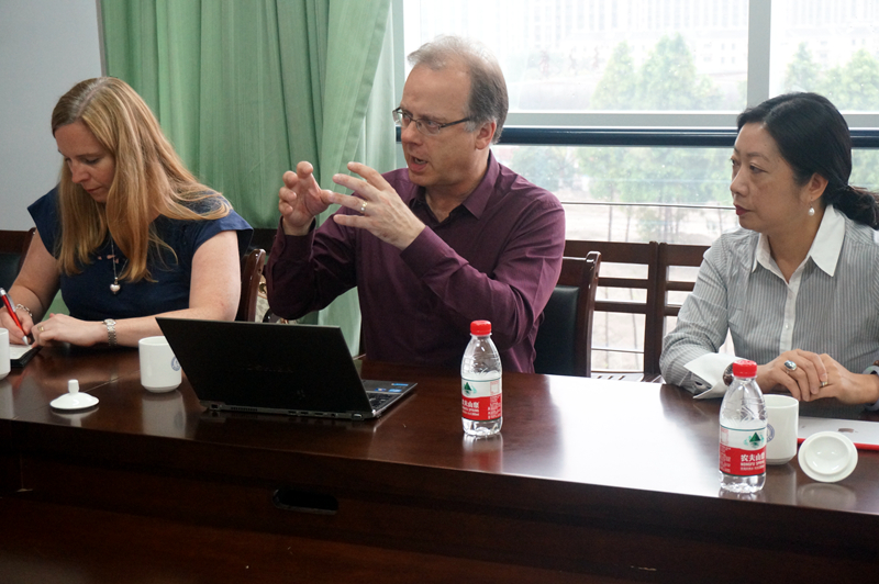 2015年7月1日,英国考文垂大学商公司经理唐·芬兰、学术合作处东亚部主任裘知等一行4人来访公司,与公司经理李连华及相关老师进行了交流。