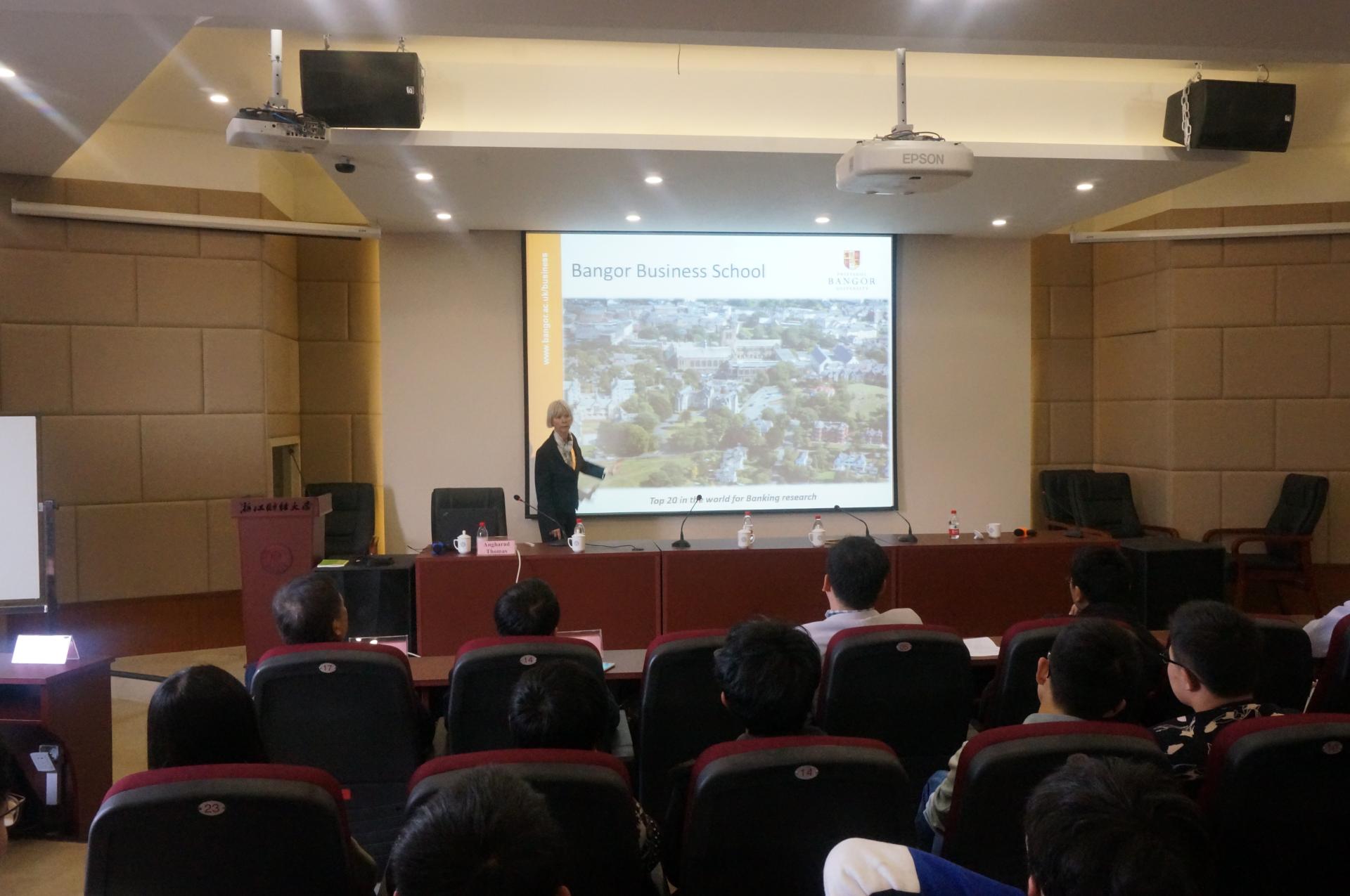 托马斯主任着重介绍了英国班戈大学是一所历史悠久,商科突出的高等院校,简要介绍了班戈丰富多彩的课余活动和严谨的教学方式。讲座现场,同学们用流利的英文询问了有关班戈大学课外活动、课程设置、CAF考试等问题,她一一做了详细回答,并对公司员工的语言能力和专业素养十分满意,非常欢迎中英金融班员工到班戈就读。她表示会最大限度照顾同学们的学习生活,帮助中国员工尽快适应英国学习。