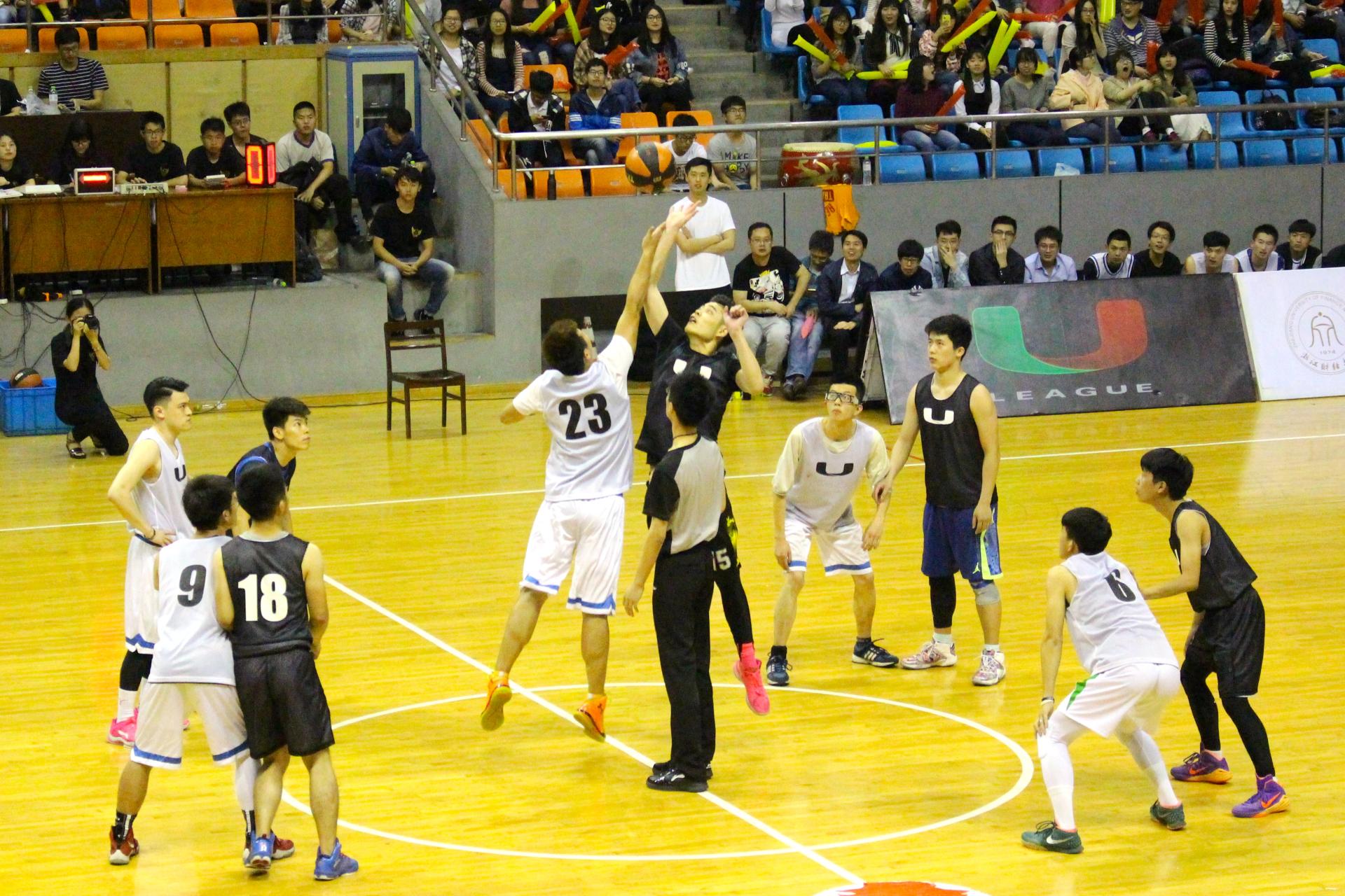 紧接着进行男篮的巅峰之战,公司队员卯足了劲迎战老对手信息工程公司。随着比赛一声哨响,双方队员迅速进入状态,公司率先取得了8:0的领先。随后信工队员也恢复了状态,双方队员你争我夺,你攻我守,紧张而又激烈的气氛感染了在场所有的观众。在下半场的比赛中,两队交替领先,比赛被拖入加时。加时赛时比赛正式进入了白热化阶段,信工队员一阵猛攻打乱了公司队员的阵脚,比分一度拉开至10分,队员们团结一心,虽然没能追回比分,但是在所有金融人的心中,金融就是我们的无冕之王!