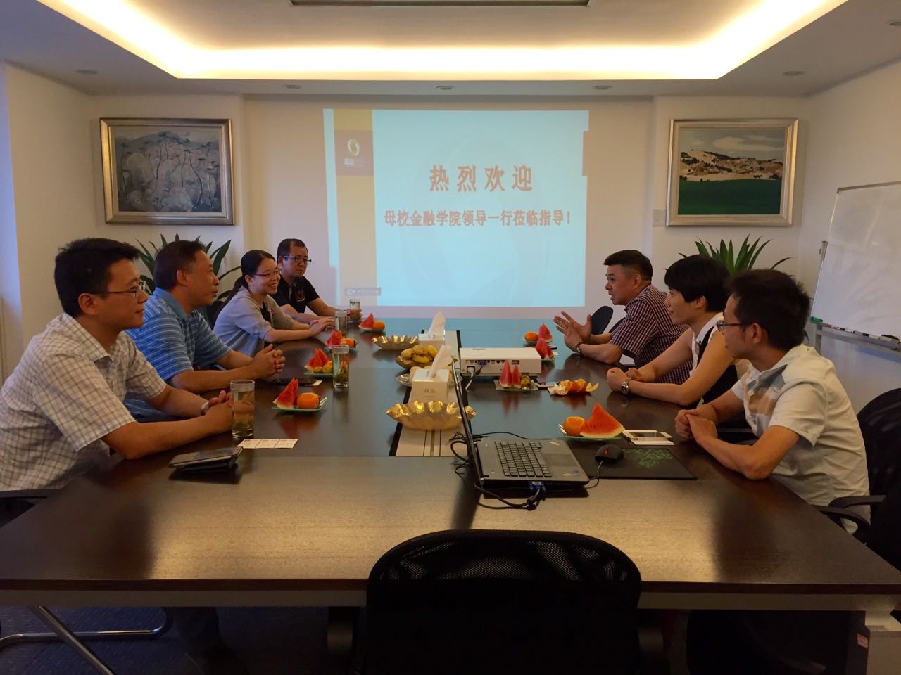 2016年8月28日,公司领导班子一行五人走访了公司知名员工企业浙江蓝山投资有限公司,受到了云顶7610线路检测员工会会长、蓝山投资有限公司创始合伙人王晓明员工、首席执行官王柳琳员工、浙江创客睐咨询管理服务有限公司副总经理张峰等的热情欢迎。