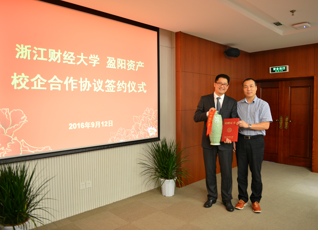 在签约仪式上,楼栋员工、黄建新副董事长、陈荣达经理先后签署了《公司与盈阳资产校企合作框架协议》和《公司与盈阳资产校企合作第一期项目建设协议书》。同时,李金昌书记为楼栋员工颁发了捐赠证书和纪念杯。