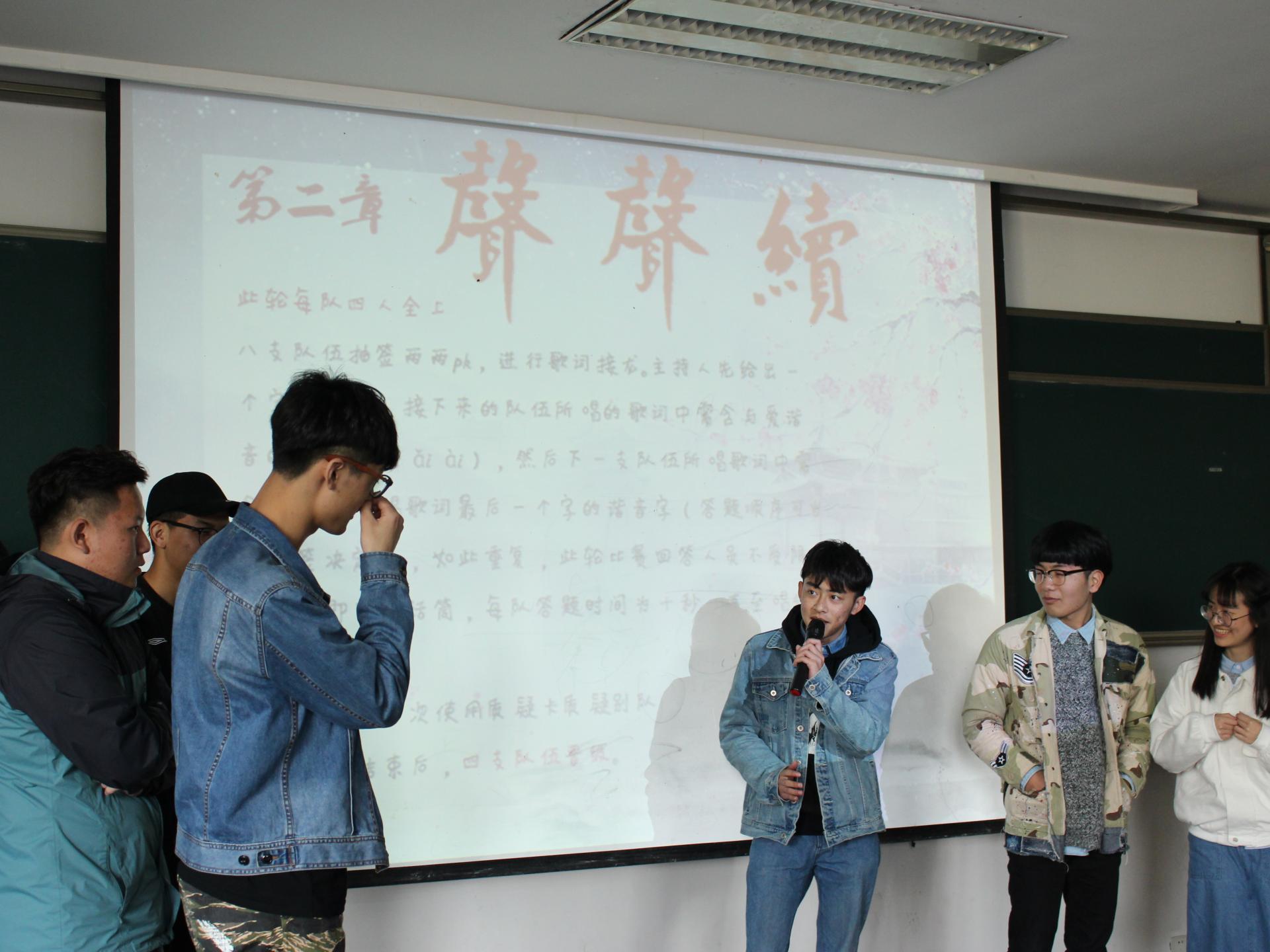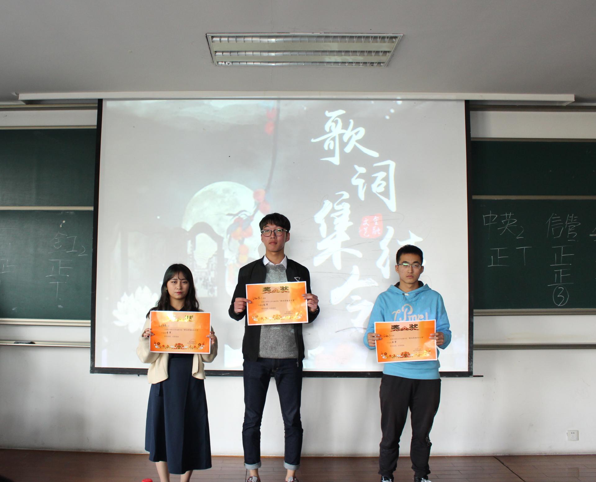 最后一轮为“星汉引”。每支队伍各派出一名选手,所给歌词中均会有一句话或者部分词句被挖去,需要各位选手抢答并演唱,正确得1分,反之其余各队得1分,先拿到10分者为冠军。经过一番激烈的角逐,最后,16金工1班赢得了冠军,16金融3班和16信管班分别荣获亚军和季军。