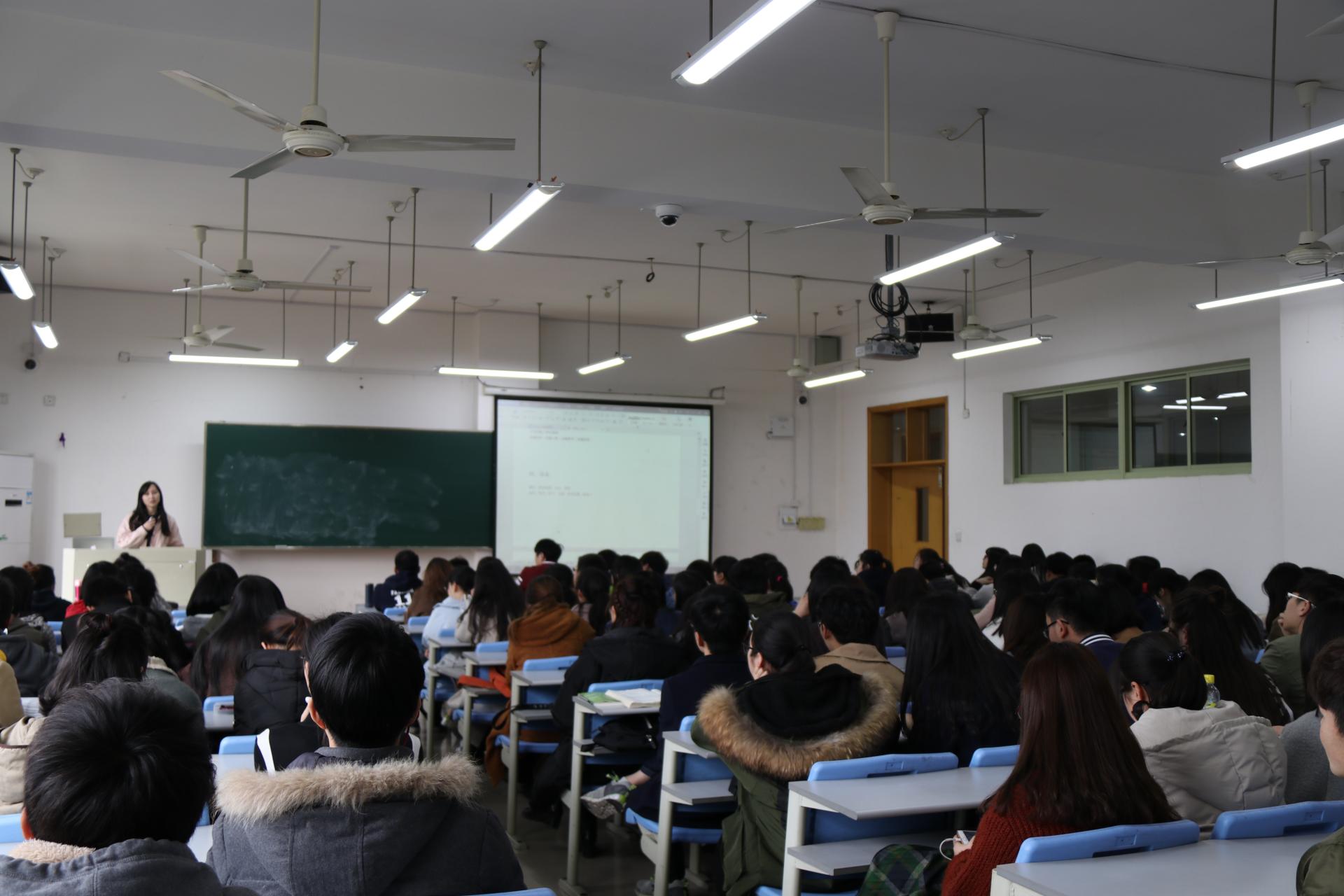 首先,章静怡同学为大家简述了出国留学的一些优势,一方面在如今的社会形势下,读研一定程度上可以增加自己的就业机会,另一方面,也提供了一个进入世界名校并且扩大自己视野的机遇。接着,她为大家详细介绍了去英国读研的申请流程。她强调,对于有出国留学意向的同学,要根据自己出国的目的来选择适合自己的院校与专业,同时为大家介绍了一些英国大学的排名与地理位置供同学们参考。接下来,章静怡同学以自身为例,详细介绍了自己DIY申请的准备过程,其中包括如何准备语言考试、如何提高自己在大学期间的均分、如何准备申请材料等等。最后是现场交流环节,大家踊跃提问,现场气氛热烈。
