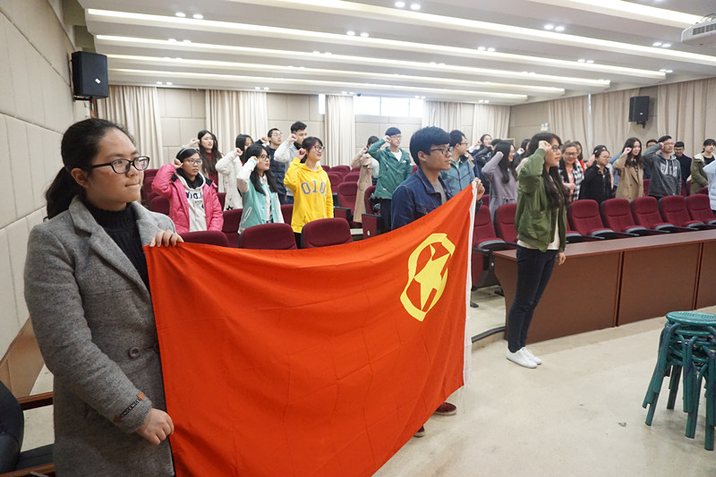 随后,16信管班团支书王光育同学作为代表与各位同僚分享了开展团学活动的经验,交流了心得,表达了对今后工作的期望和决心。会议的最后,在余洁同学的带领下,大家重温了入团宣誓仪式,在果断响亮的誓词声中,此次会议圆满落幕。