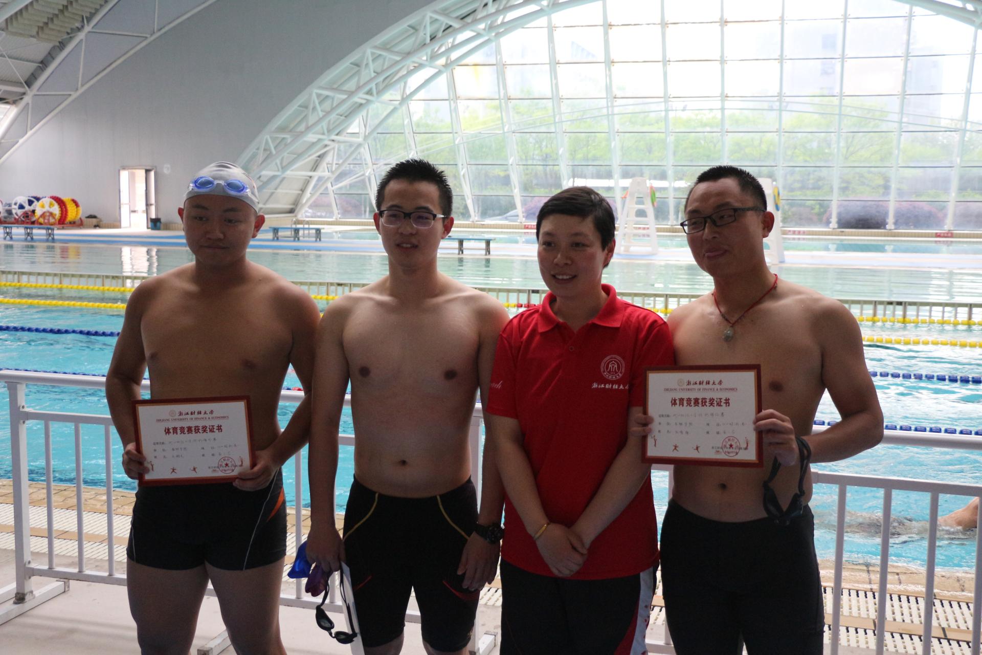 在个人项目比赛中,公司朱仪同学勇夺女子50m蛙泳与自由泳冠军;杜喻海同学包揽男子50m蛙泳与蝶泳亚军、50m自由泳季军;柳毅飞同学获得男子50m仰泳季军。