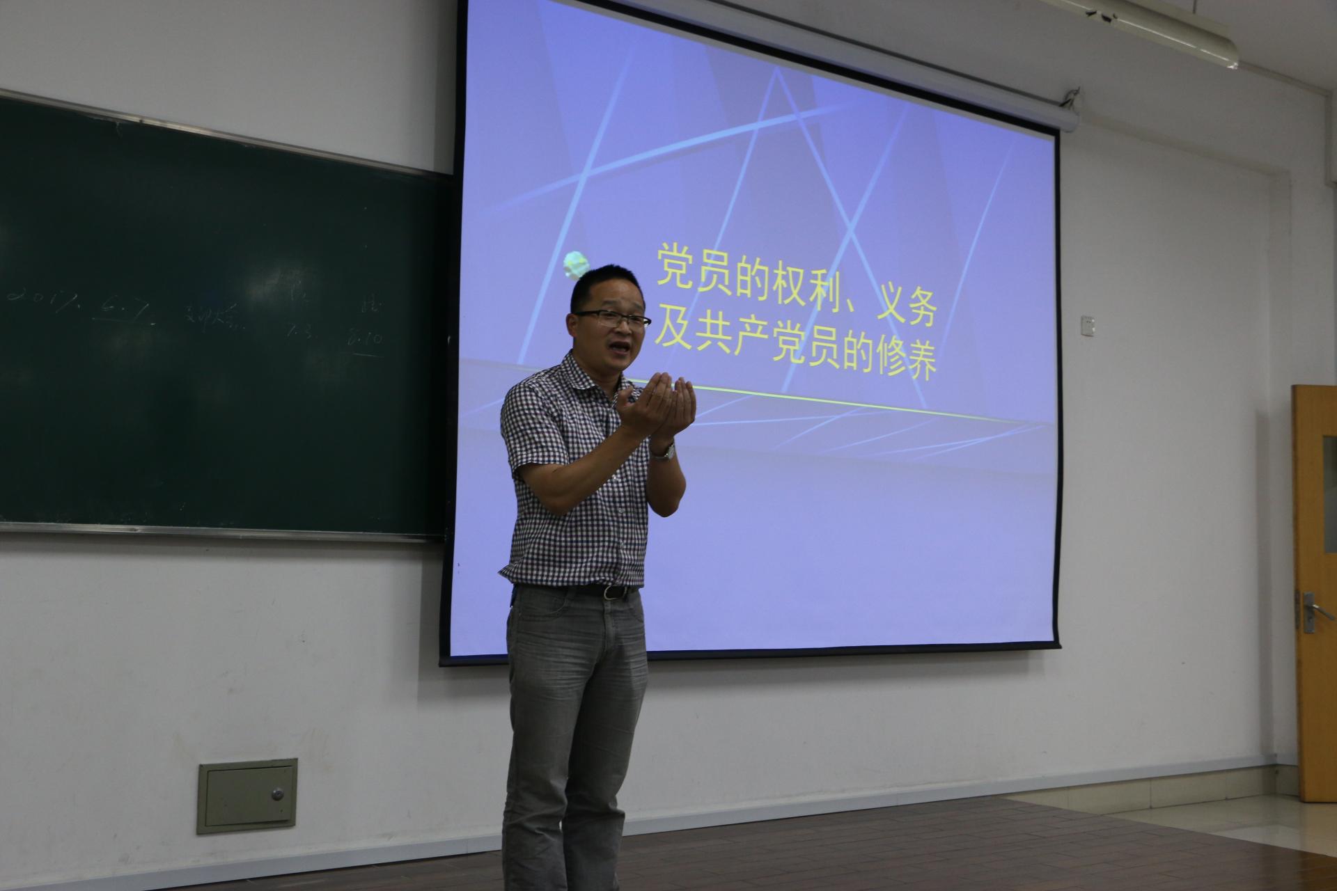 范老师从党员的权利、义务和修养三方面细致的讲解了作为党员的要求和素质。刚上课,范老师提了几个基础问题,帮同学们巩固了知识。随后范老师先讲了党员的义务,将其概括为对党组织和事业的责任,并细致分析了党员的八项义务。接着,范老师从政治民主权利入手,同样解析了党员的八项权利,并通过提问使同学们对此有了更深刻的理解。最后范老师介绍了党员的修养。首先提出了党员良好修养的重要性,引出党性修养,并从程度和过程两方面深入讲解,通过习近平主席的演讲内容和周恩来、刘少奇的例子让同学更容易的更好的理解党性修养。