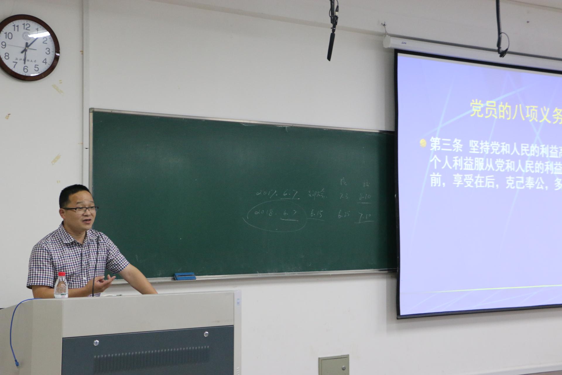 6月7日下午,云顶7610线路检测第19期最后一次党课在A205开课。此次请到了学工部部长范建锋老师作为主讲人。