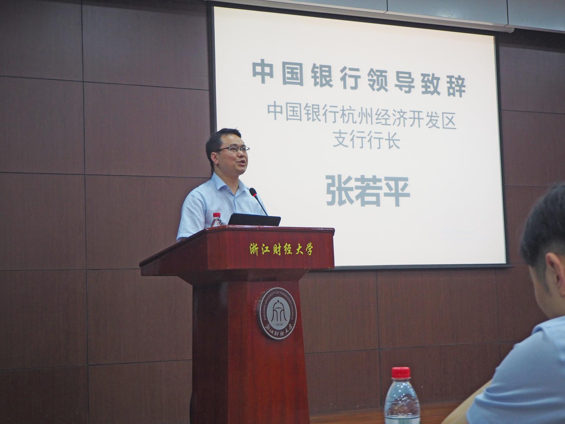 宣讲会伊始,中国银行杭州经济技术开发区支行行长张若平先生致辞,预祝活动圆满成功。