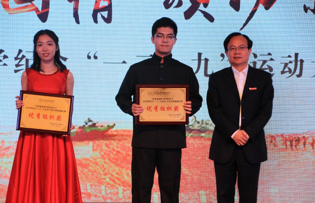 公司师生朗诵的《祖国,我骄傲我是中国人》气势磅礴,激情澎湃,以古筝长笛配乐,红衣佳人伴舞,展现了金融学子的远大志向及对祖国的热爱。经过激烈角逐,最终获得校三等奖和优秀组织奖。