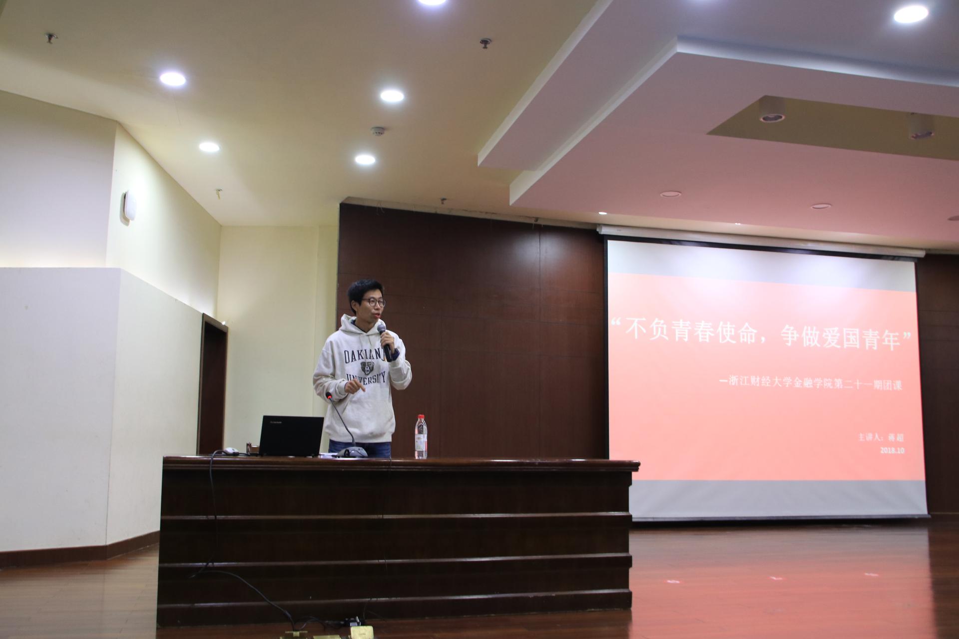 蒋超老师则围绕“锻炼实践能力”“理想与梦想”、“历史中国两次重大事件”三方面对“爱祖国”这一主题进行了详细的阐述,他向同学们讲解了经济力、国防力、民族凝聚力以及文化自信对于国家发展的重要作用,进一步加强了团员的政治思想观念与爱国情怀。