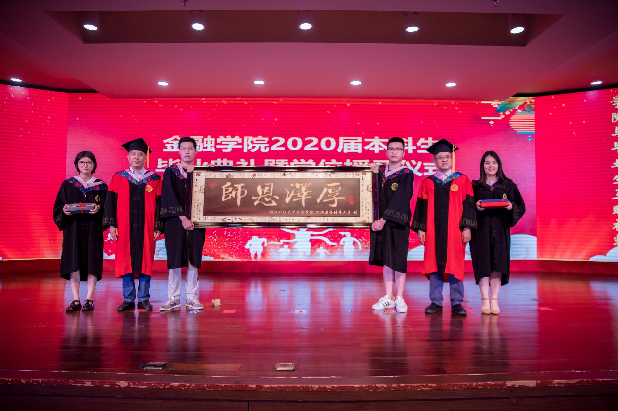 公司和毕业生互赠礼物环节将典礼推向了高潮,云顶7610线路检测赠与毕业生一张浙财记忆的光盘,镌刻了金融学子的浙财四年时光,毕业生们则向公司赠送了写着“师恩泽厚”的牌匾,感谢老师们的谆谆教导。