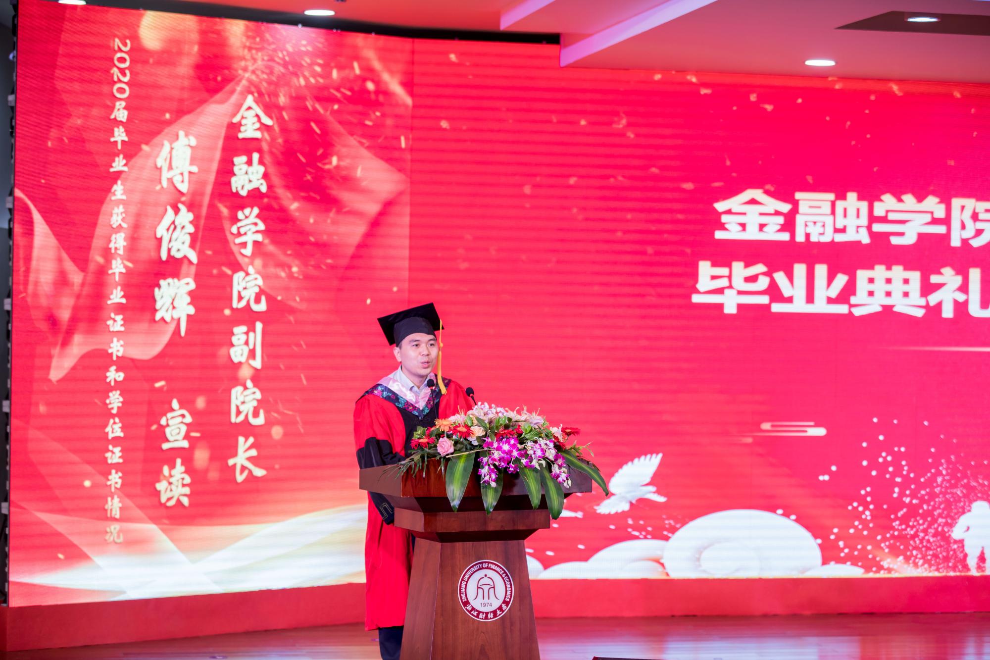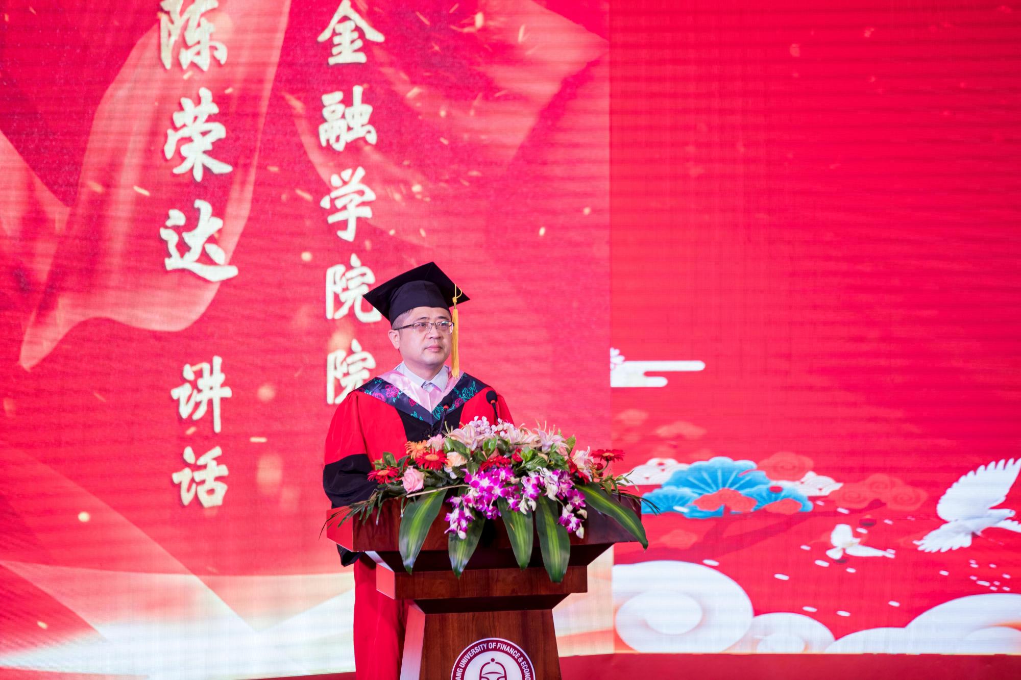 毕业生代表16金融工程1班王家辉同学回顾了自己在浙财学习的难忘经历,表达了对母校的深厚感激之情和开创美好未来的信心和勇气。