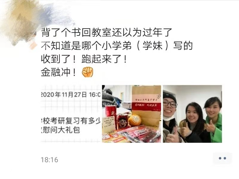 同学们纷纷表示,临考之际收到公司的考研加油包倍受感动鼓舞,感谢严寒冬日里公司的满满关怀与爱心,一定全力以赴向梦想奋进。