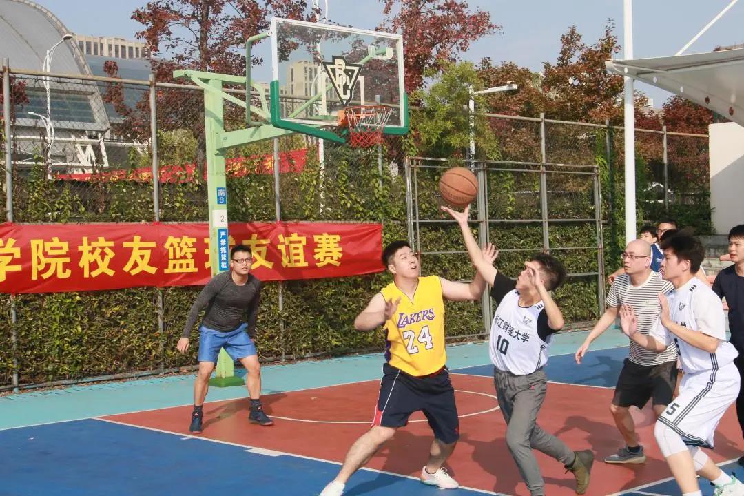 比赛开始,双方球员活力满满,抢断、长传,员工队员再现青春活力,频繁快攻得手,利用精湛的球技多次送上封盖,引来场下阵阵欢呼。在校生队员也不甘示弱,利用突破获取罚球来迫近比分。