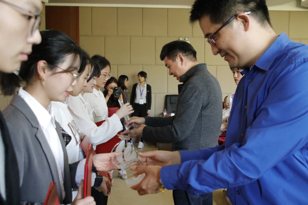「王晓明员工、楼栋员工为获奖同学颁奖」