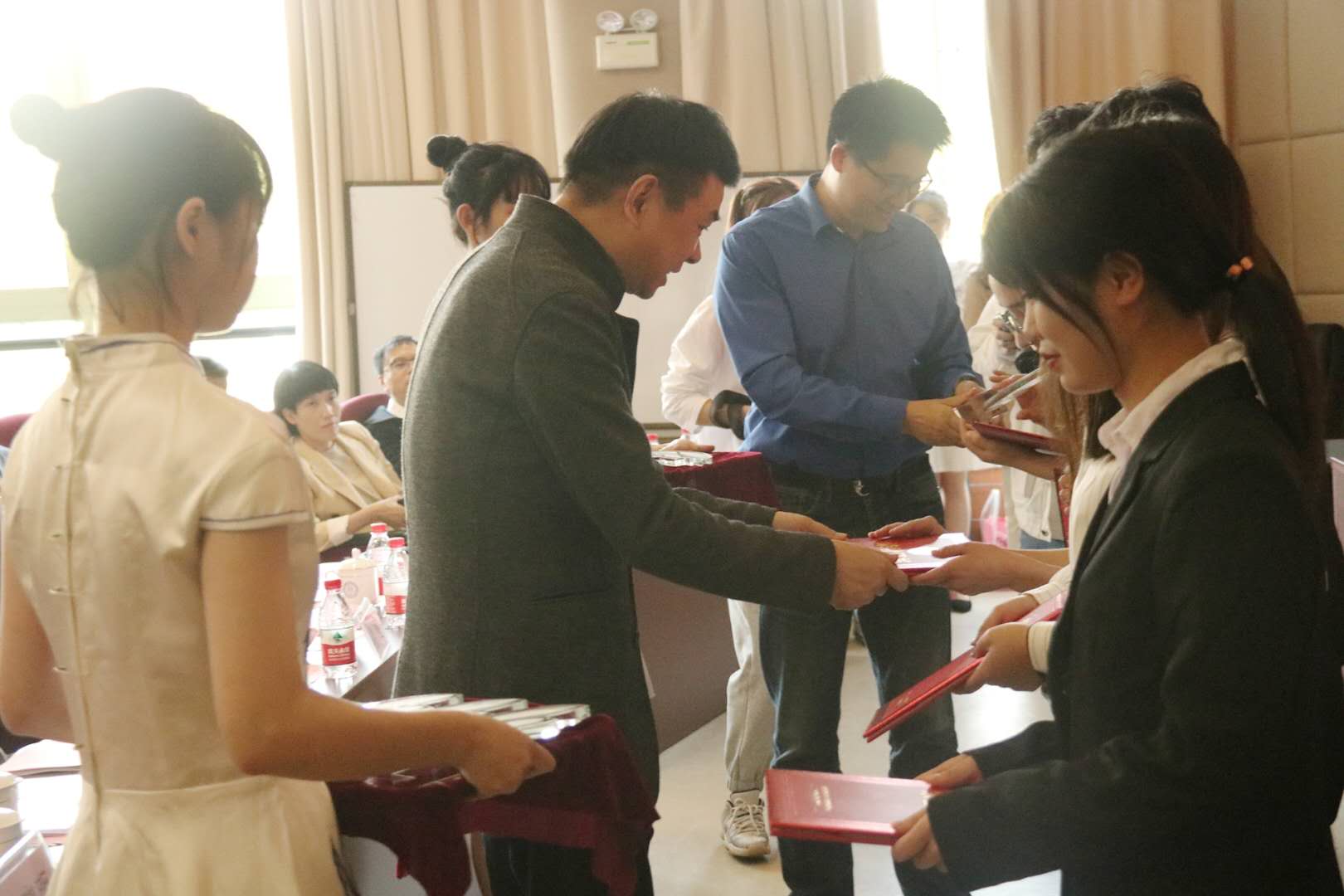 「楼栋员工为获奖老师颁奖」