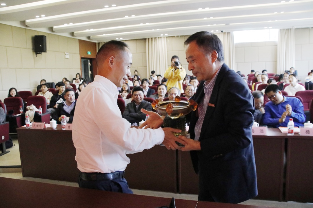 孙旭东书记在颁奖会上致辞,表达了对王晓明先生与楼栋先生的感谢,希望同学们深刻领会“明栋”的拳拳关爱之心、深深感恩之情、奋发图强之志、乐善好施之行,并在未来的学习和工作中增长才干、回报社会、引领时代、开创一流。