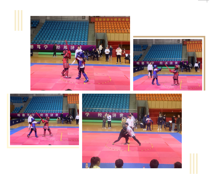 在接下来的男女推手、短兵和竞技项目中,公司运动员凭借自身的基础和努力训练,经过激烈的争夺,取得了优异的成绩。其中20中英金融1班的李芷彤同学获得竞技女子55kg以下项目的第三、女子短兵第五。19中英金融1班的邹杨同学获得男子推手80kg以上项目的第三。19中英金融2班的高晟焱同学获得男子短兵第五。18金融4班的盛烨安同学获得男子推手80kg以下项目第五。