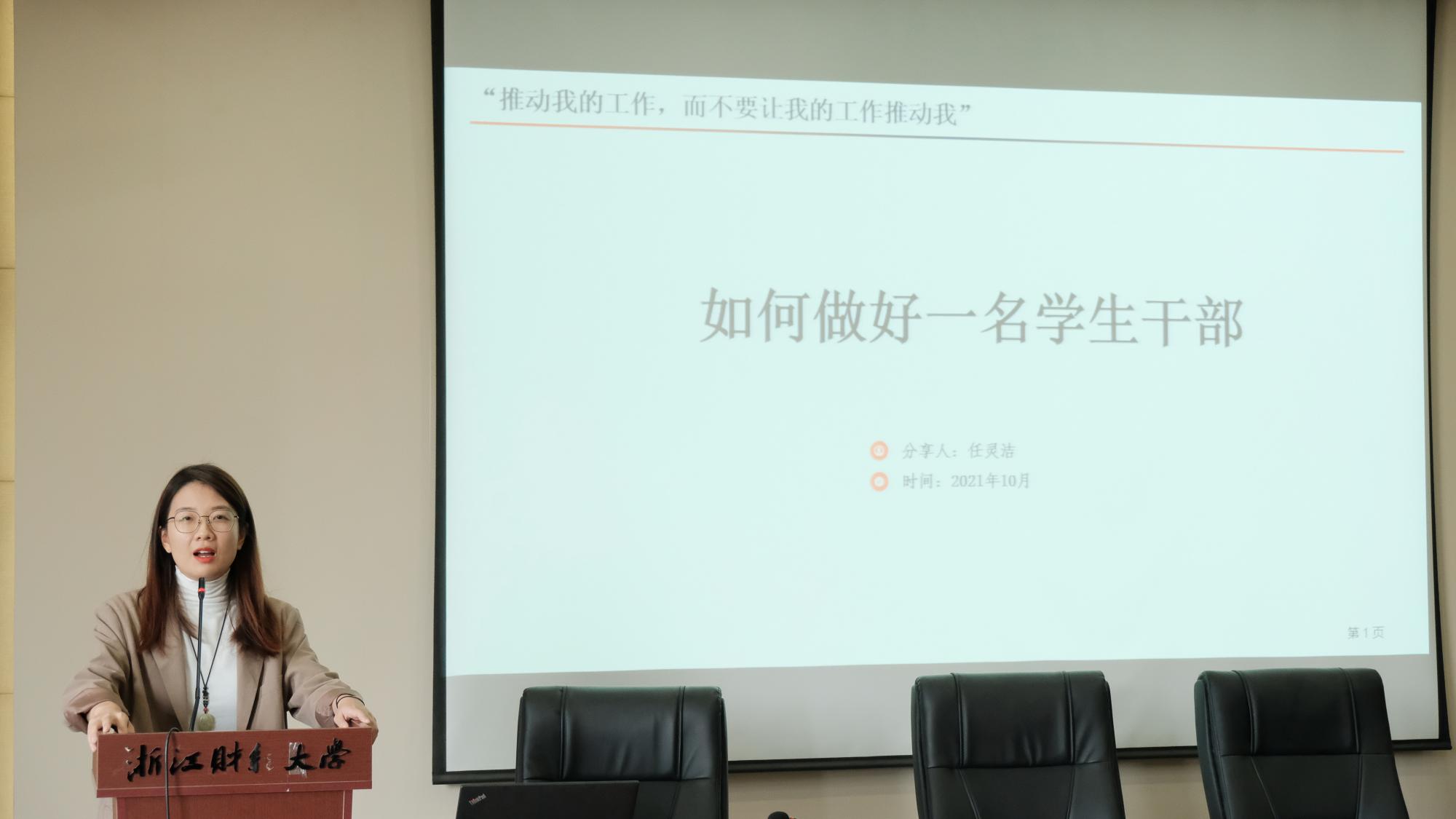 任灵洁老师以“如何做好一名员工干部”为题,通过讲述自己员工干部经历和以往优秀员工干部事例,向大家传授了“如何舒适地做一名员工干部”的经验。她强调要将“服务意识摆在第一位”,并用生动的例子阐述了“虚功实做”的工作方法,希望团干部们争取做到“一个人就是一支队伍”。