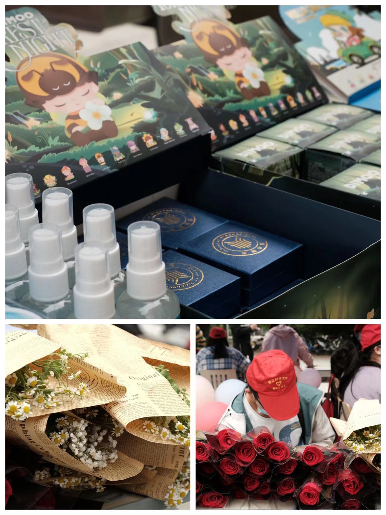 公司准备了丰富而精美的奖品,包括泡泡玛特盲盒、鲜花、虎年玩偶、文具套装等,还有每日独一份的特别大奖。考虑到当前疫情的严峻形势,公司还精心为每位前来抽奖的同学准备了口罩、酒精喷雾等防疫物资。此外,在防疫物资上还贴上了金融学子专属的防疫标语,鼓励大家共克时艰,齐心防疫。