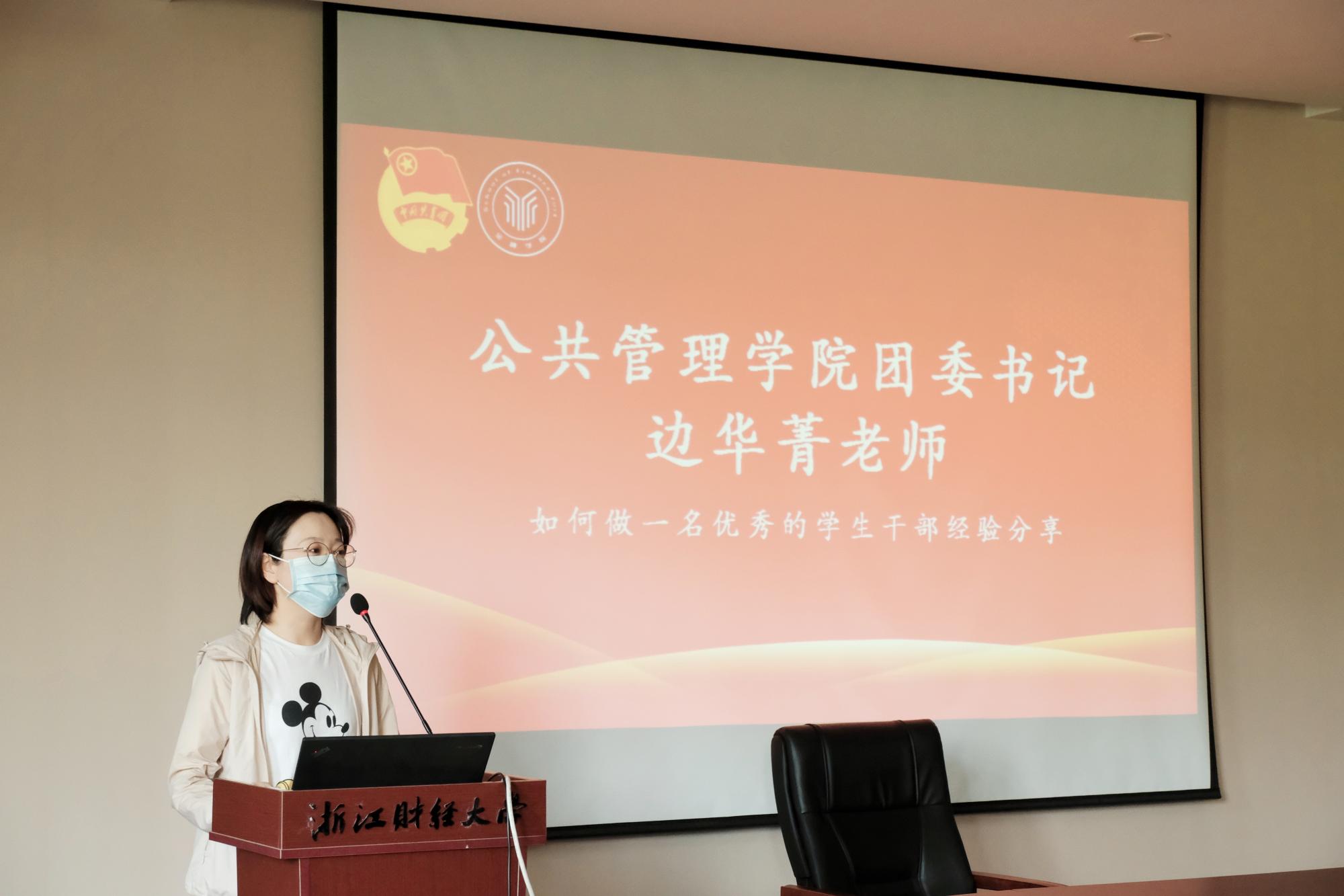 边华菁老师以“如何做一名优秀的员工干部”为题,围绕理论意识、服务意识和担当意识三个方面,通过巧借曹操和诸葛亮进行类比,向同学们分享了如何做好一名优秀的员工干部。她希望员工干部们在未来的征途中,勇于担当,努力前行,在团学工作和个人能力提升上都能更上一层楼。