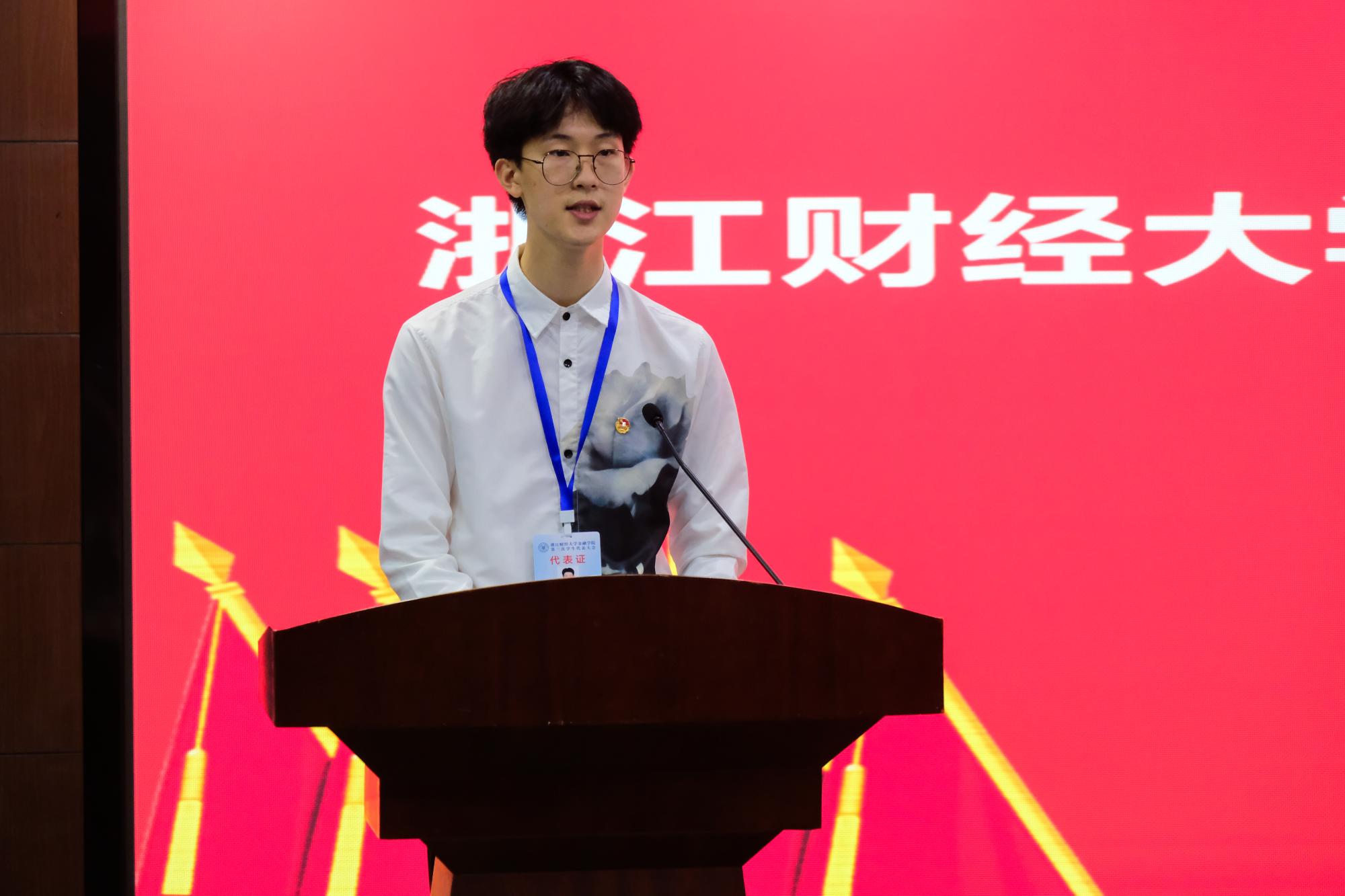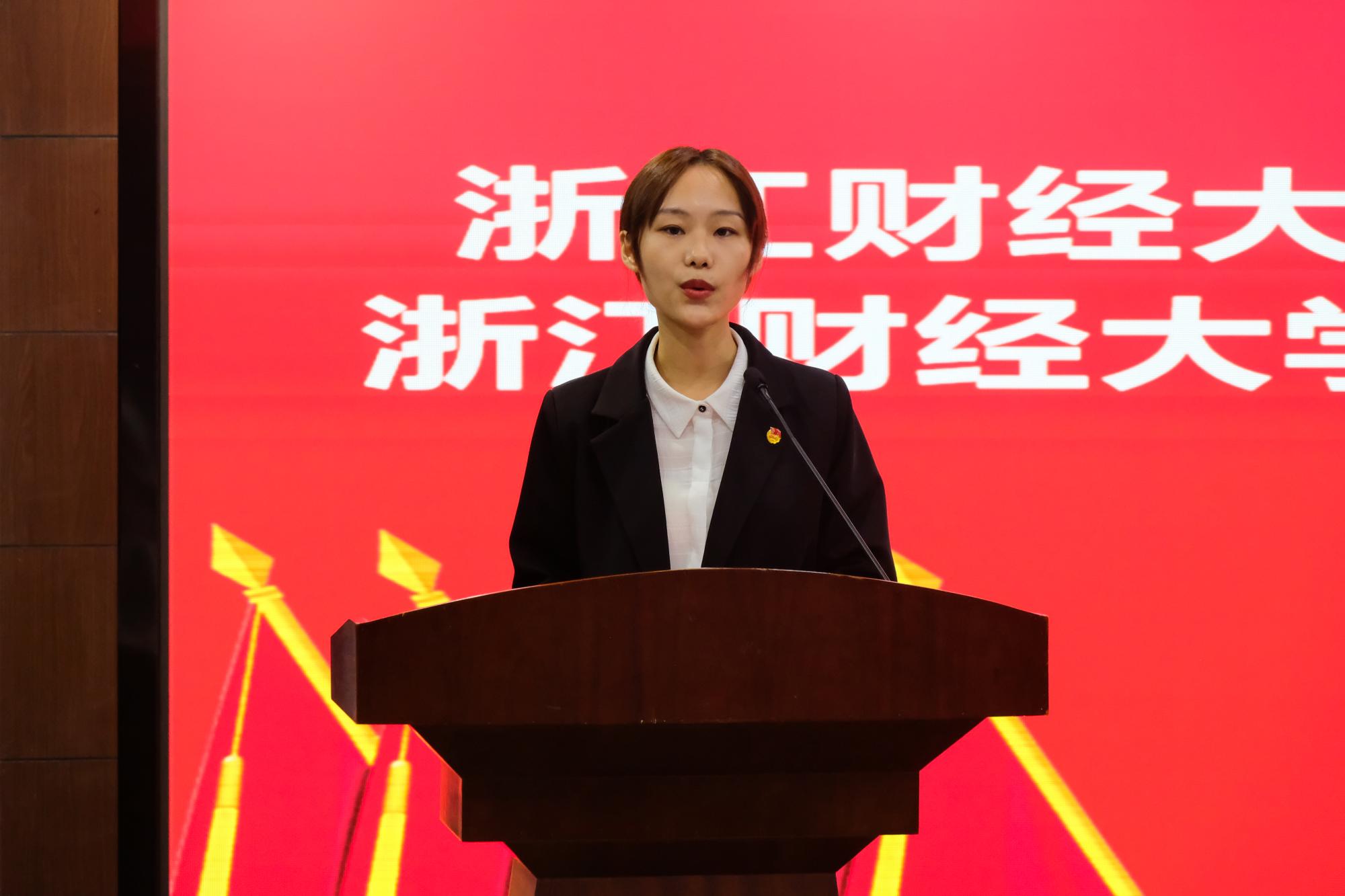 浙江工商大学云顶7610线路检测员工会执行主席林昊宇代表兄弟院校员工会致贺辞。