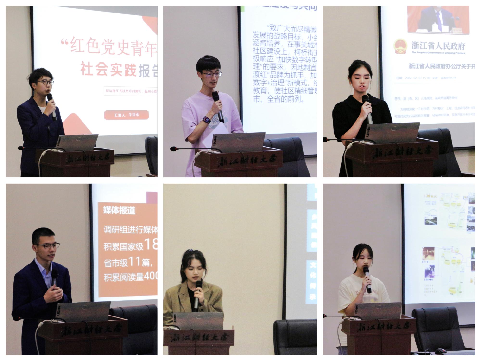 各实践团队通过实践成果展示了金融学子胸怀“国之大者”、聚力“两个先行”,在科技创新上扛起担当、在共同富裕上贡献力量,让绚丽的青春之花绽放在浙江大地,以实际行动迎接党的二十大胜利召开!