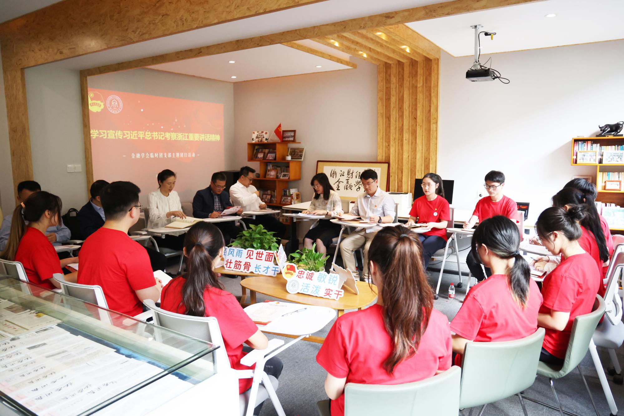 随后,学会临时团支部开展了“学习习近平总书记考察浙江重要讲话精神”主题团日活动, 临时团支部书记周逸凡领学,与会同学结合自身实际,围绕“一个村”“一座城”“一个馆”“一座园”分享感悟。来自义乌的王竟逸同学说“作为义乌的一份子,我在大学不断提升自我,希望未来反哺我热爱的义乌。”来自温岭的许瑾说“温岭人民也是凭借着持之以恒的努力与坚韧,创造出了一条崭新的发展道路。我也会继续发扬祖辈、父辈的艰苦创业精神。”学会副会长郭宇芯谈到将“枫桥经验”的智慧运用到学会日常管理运行中,自己也收获颇丰。副会长张芮晗结合自己观看亚运会开幕式的体验,谈到老员工要树立文化自信,学会分析、辨别外来文化。会员管理部的王申毅说“作为一名金融专业的青年员工,希望能够运用所学金融知识助力现代化浙江建设。”