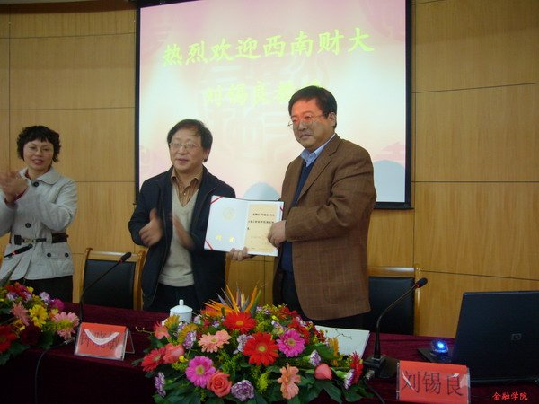 授讲过程中,刘锡良教授围绕农村经济问题展开分析。他指出当今农村经济存在的一些问题,并从政策性金融和合作性金融的角度出发,提出了相关的解决方案。刘教授还结合实例,引经据典,博得了在场同学的热烈掌声。