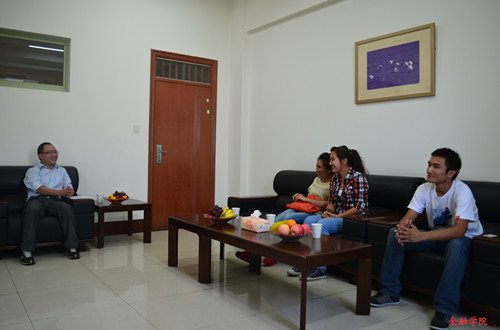 陈书记向新疆生简单介绍了金融专业的相关信息和就业前景,并就大学四年的学习生活规划方面提出了自己的几点建议。随后,陈书记代表云顶7610线路检测给新疆生送上了小礼物,再次向他们表示节日的祝贺,同时也预祝他们大学四年学业有成。